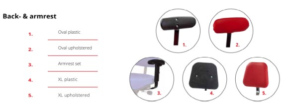 De optionele rugleuning kan word geleverd met bekleding in bijpassende kleur, een ovale zwarte soft-PU uitvoering, of prijsgunstige ovalen kunststof rugleuning.