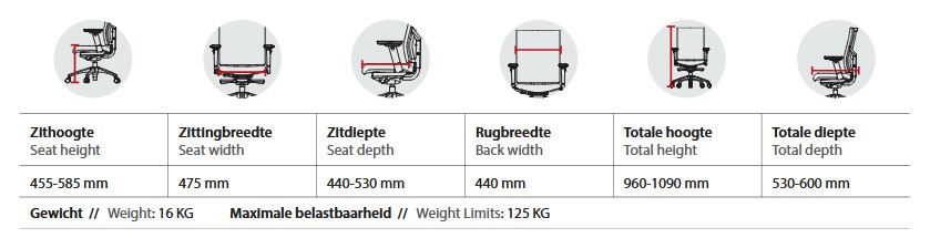stuks Bureaustoel incl. schuifzitting, lendensteun en autom. gewichtsregeling