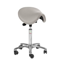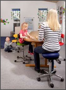 Op deze wijze ontstaat een gezonde balans, net zoals bij het weldadige effect van de Pilates bal, met als voordeel dat deze stoel wielen heeft en met een gasveer in hoogte verstelbaar is.