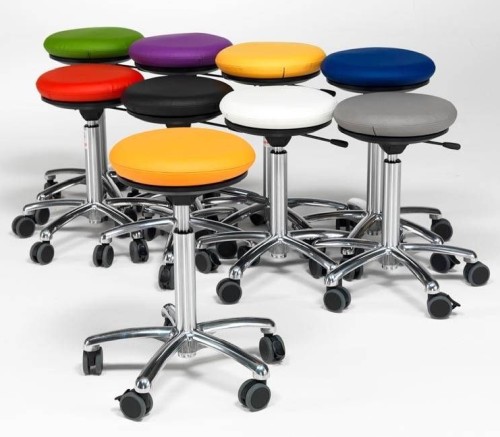 Air Cushion Zitting: Ø 33 cm, bekleed met Stamskin antibacterieel kunstleder of meshcover 3D-Runner stoffen bekleding.