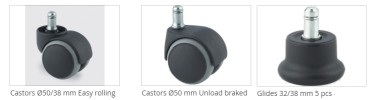 Deze stoel is met een aluminium wielkruis uitgerust en 50 mm soepel rollende wielen of vloerglijders.